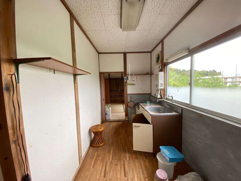 押入としての空間をキッチン側の壁を解体して、冷蔵庫置き場に。